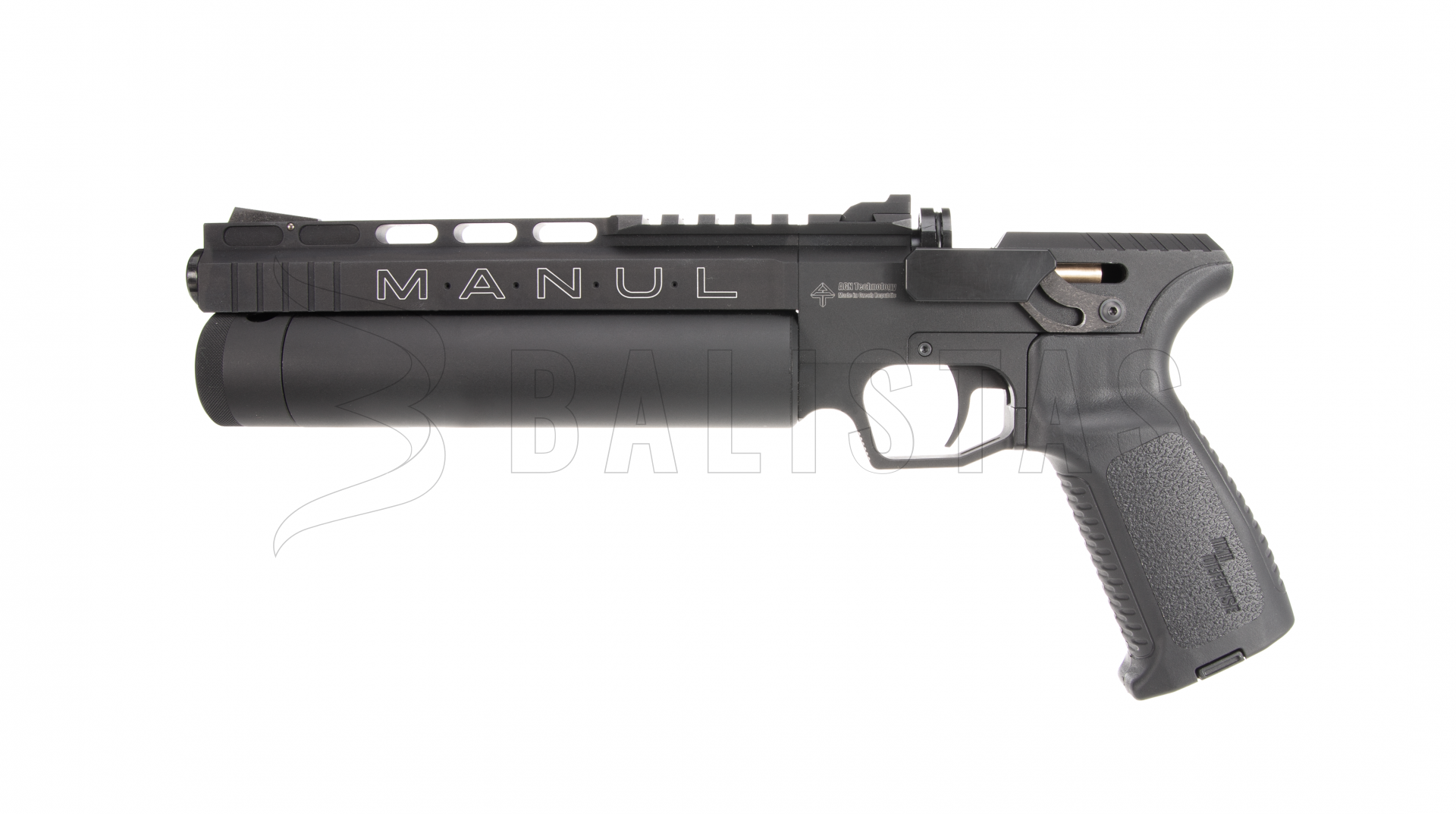 Manul predstavuje precíznu vzduchovú pištoľ s 20 cm drážkovanou hlavňou