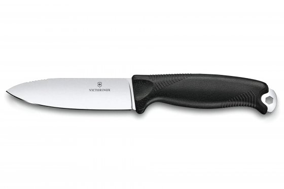 Nôž s pevnou full-tang čepeľou z prvotriednej nehrdzavejúcej ocele 14C28N s tvrdosťou 59HRC určený pre náročné outdoorové aktivity. Polyuretánová rukoväť je pokrytá protišmykovou textúrou so vzorom loga a jednotlivých písmen Victorinox. Puzdro možno použiť aj ako fúkačku pri zakladaní ohňa.